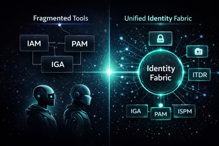 En este contexto, las organizaciones que siguen operando con soluciones aisladas de IAM, PAM o IGA están estructuralmente en desventaja. La respuesta moderna es clara: Identity Fabric.
