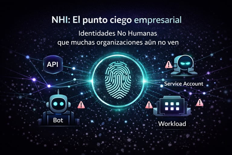Pero no hablamos solo de usuarios humanos. El crecimiento exponencial de Non-Human Identities (NHI) —APIs, service accounts, bots, workloads, agentes autónomos de IA— está redefiniendo completamente el modelo de riesgo.
